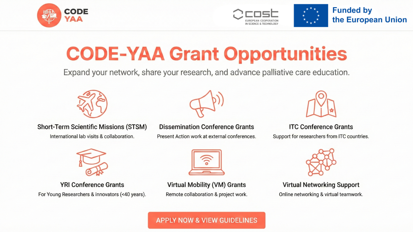 In response to an age-related increase in deaths from chronic diseases, the CODE-YAA@PC-EDU project (COST Action CA22127) was born for integration and improvement of education and training in palliative care.
